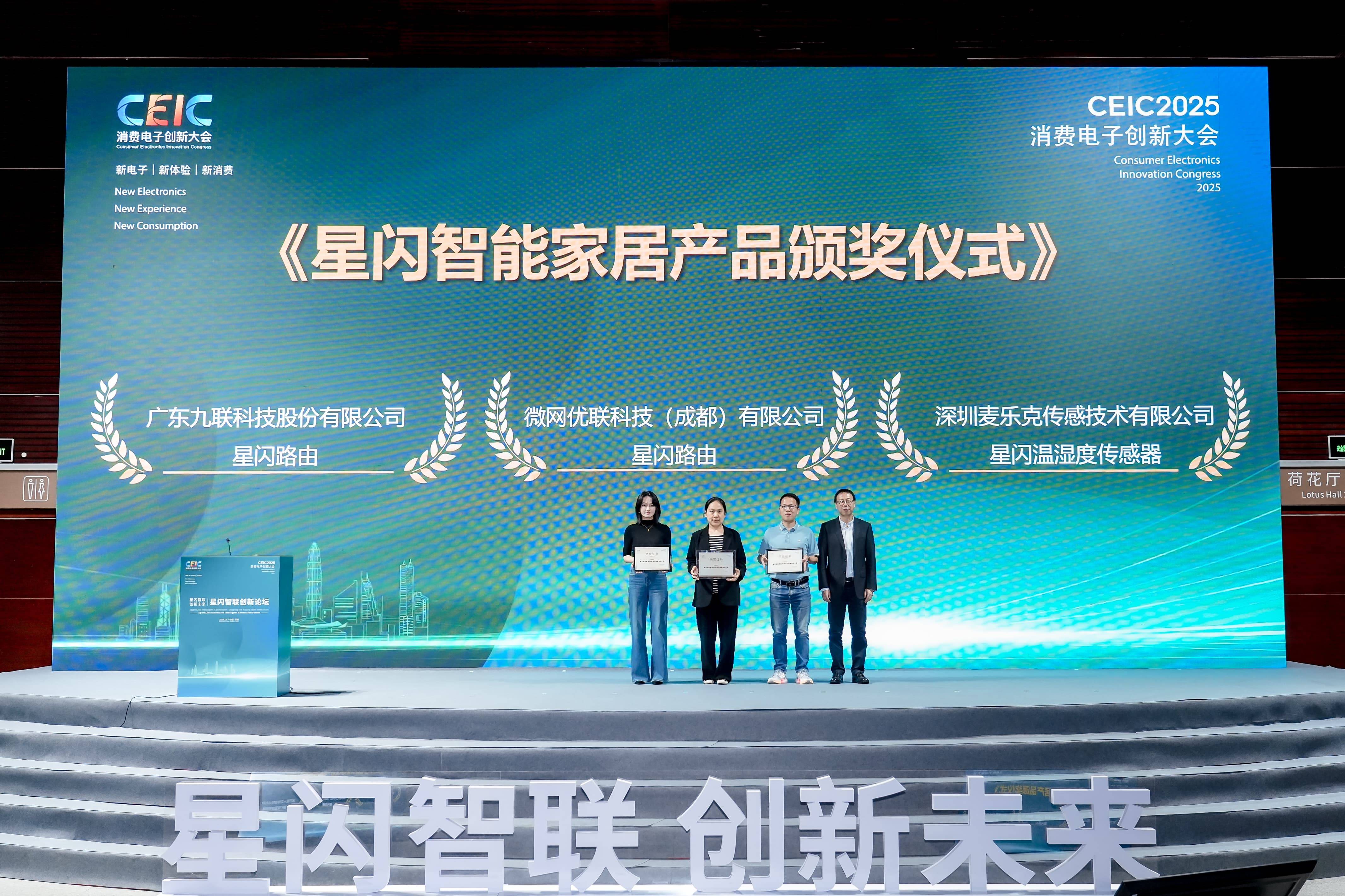 在随后举行的星闪智能家居产品颁奖仪式上,中国移动智慧家庭运营中心家庭智能连接部总经理夏羿为广东九联科技股份有限公司、微网优联科技(成都)有限公司、深圳麦乐克传感技术有限公司旗下的三款通过移动运营商准入摸底测试的星闪智能家居产品颁发荣誉证书。