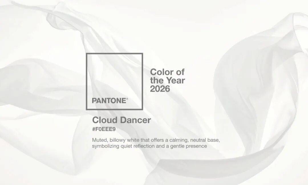 12月4日,权威色彩机构Pantone(潘通)公布了2026年的年度代表色:PANTONE 11-4201 Cloud Dancer(云上舞白) 。这是潘通第一次选择白色色调,也是27年来首次选择白色作为年度颜色。