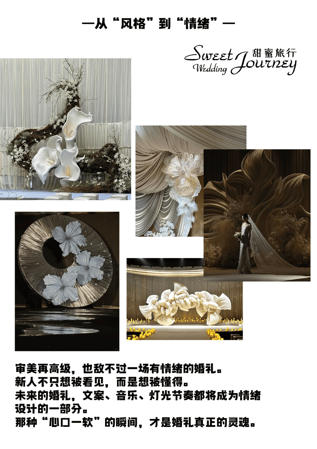 高级审美不如走心情绪,现在的婚礼更看重“被懂得”,文案、音乐、灯光节奏全是情绪设计,一个眼神一个拥抱,都是心口一软的瞬间~